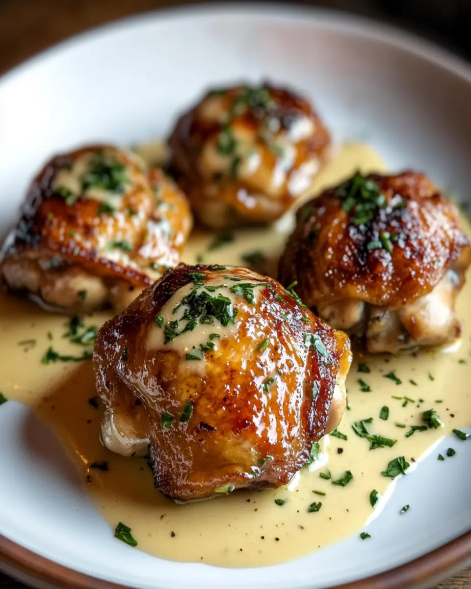 This savory dish features tender chicken thighs simmered in a rich and creamy garlic sauce, perfect for serving over pasta or rice.