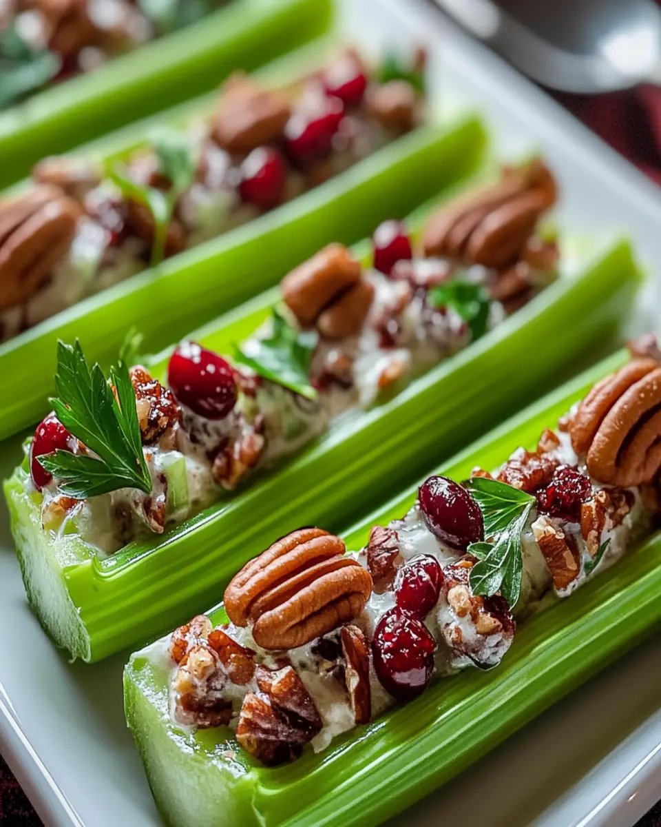 Cranberry Pecan Holiday Celery Boats
