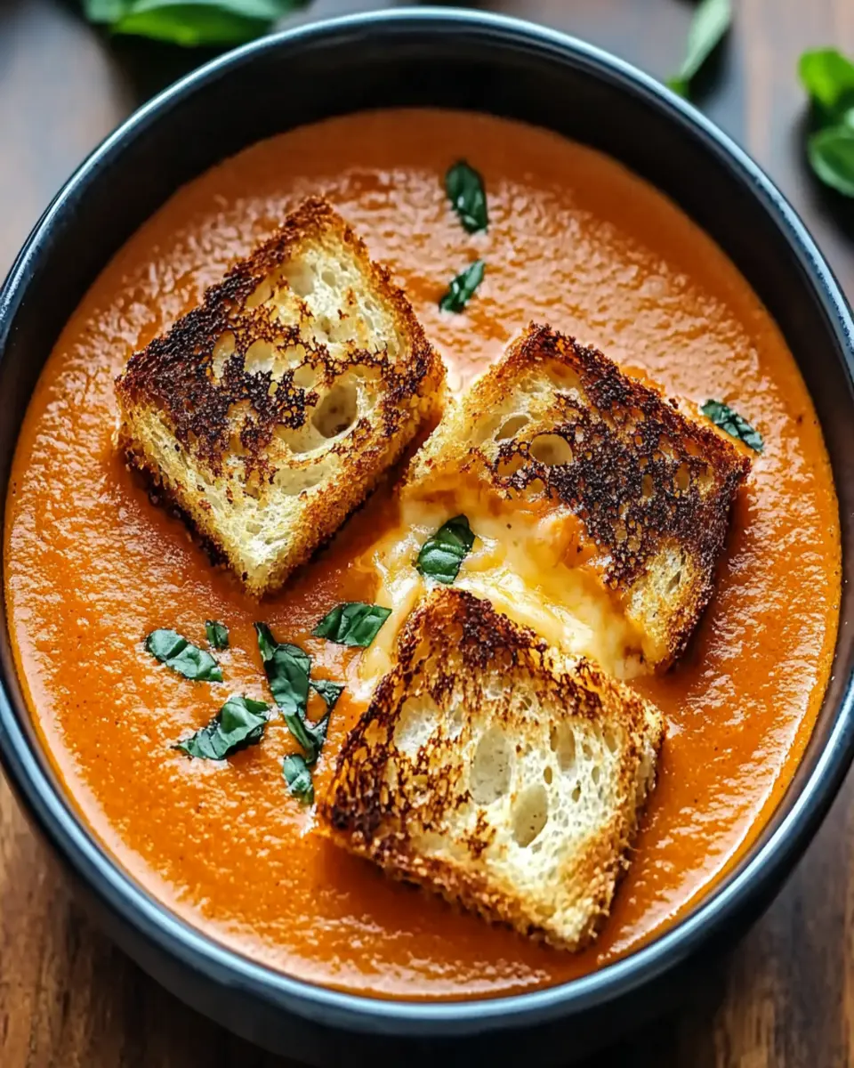 In conclusion, the Creamy Tomato Bisque with Grilled Cheese Croutons is more than just a meal; it’s a comforting experience that evokes nostalgia and warmth. Perfect for busy weeknights or a cozy gathering, this recipe combines rich flavors and creamy textures that satisfy both the palate and the soul. With just a handful of ingredients and easy preparation, it caters perfectly to young professionals and homemade-food lovers alike.