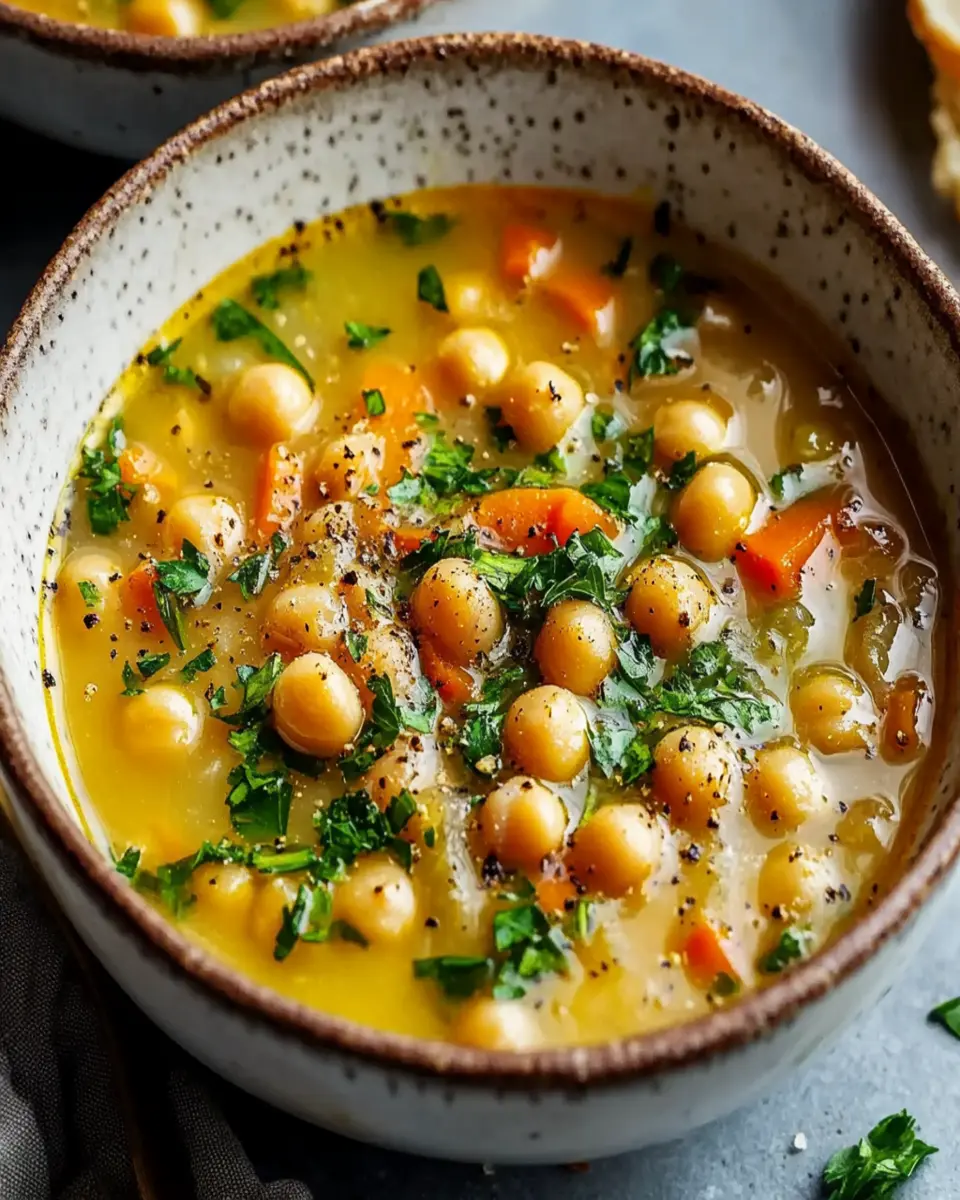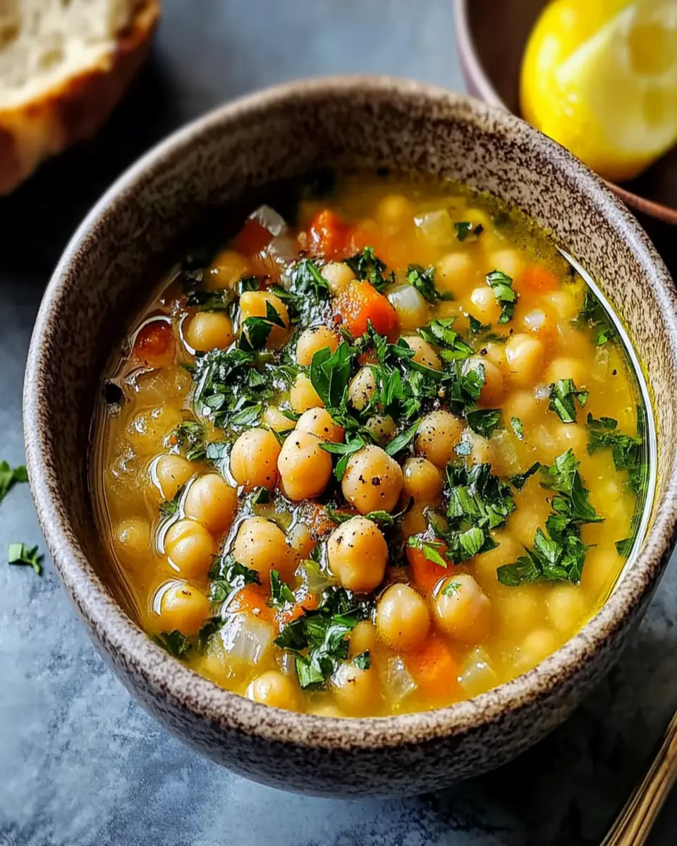 Imagine coming home after a long day, and the comforting aroma of this soup welcomes you. It’s packed with protein from the chickpeas and enriched with vitamins from the fresh vegetables. Plus, it’s a vegetarian option that’s perfect for those looking to minimize meat intake without sacrificing flavor or satisfaction.