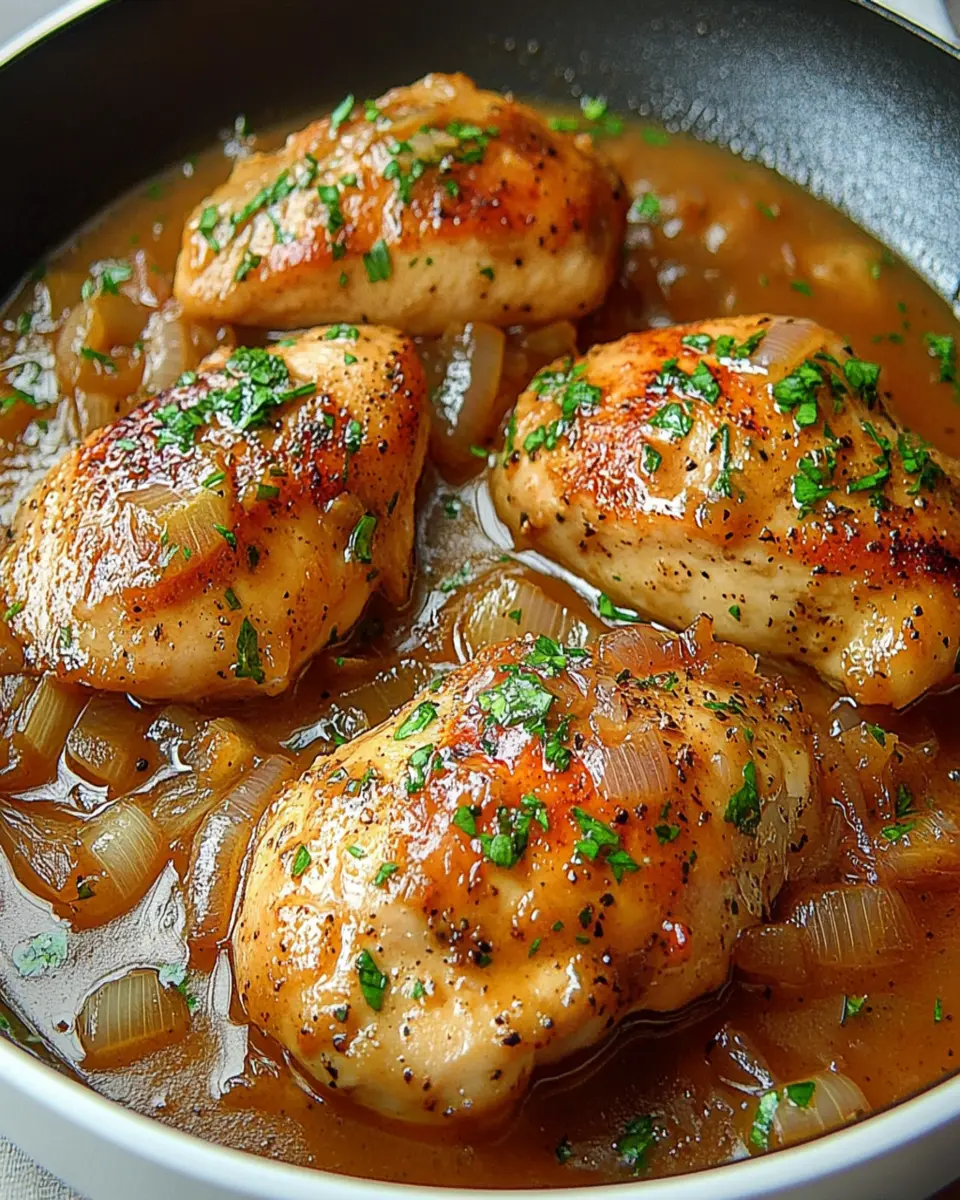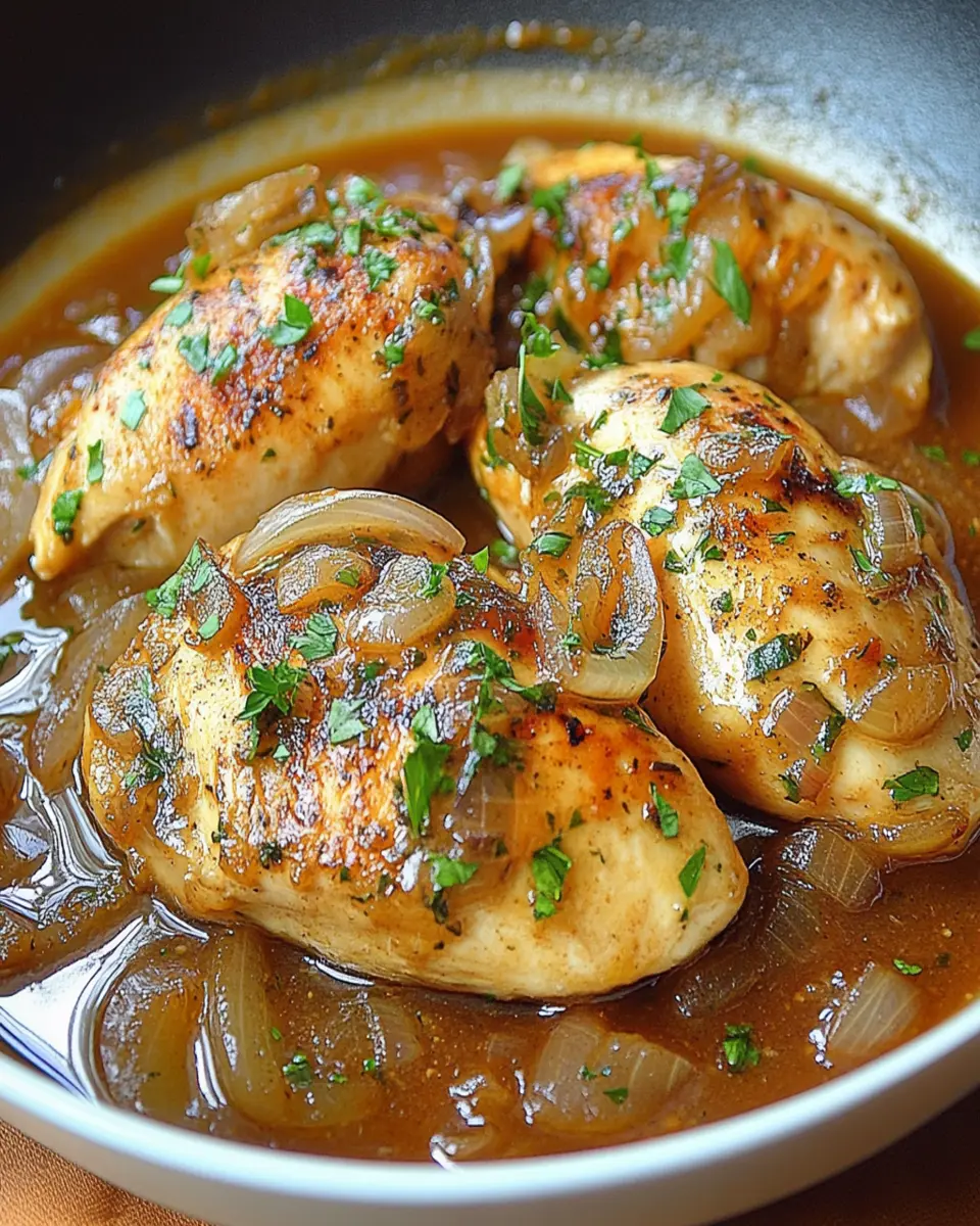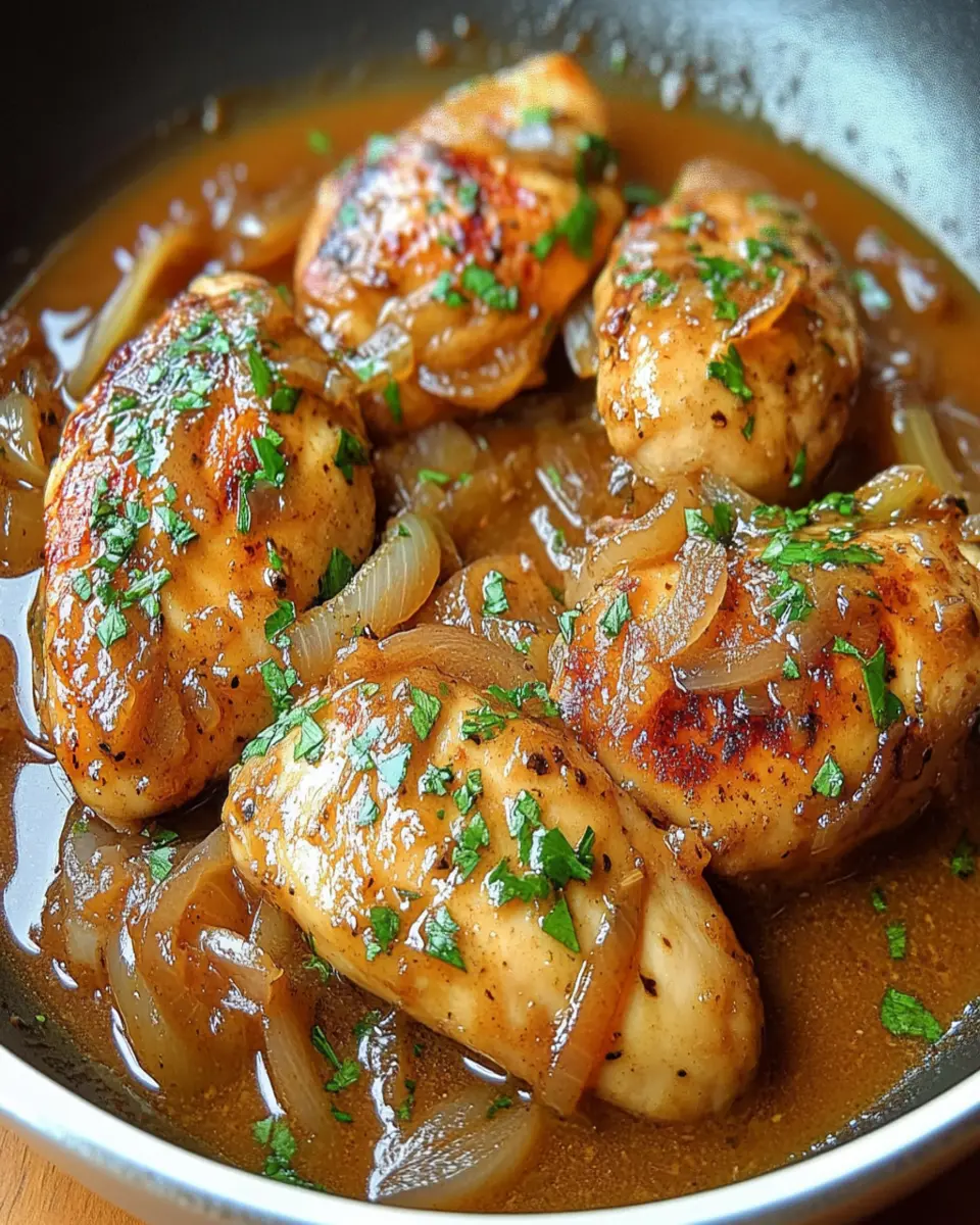 A delicious chicken recipe simmered in a savory onion sauce that everyone will love.