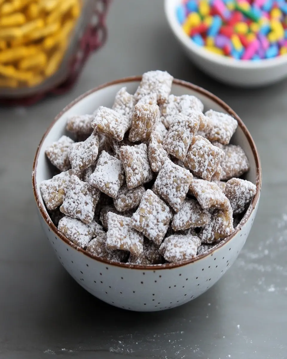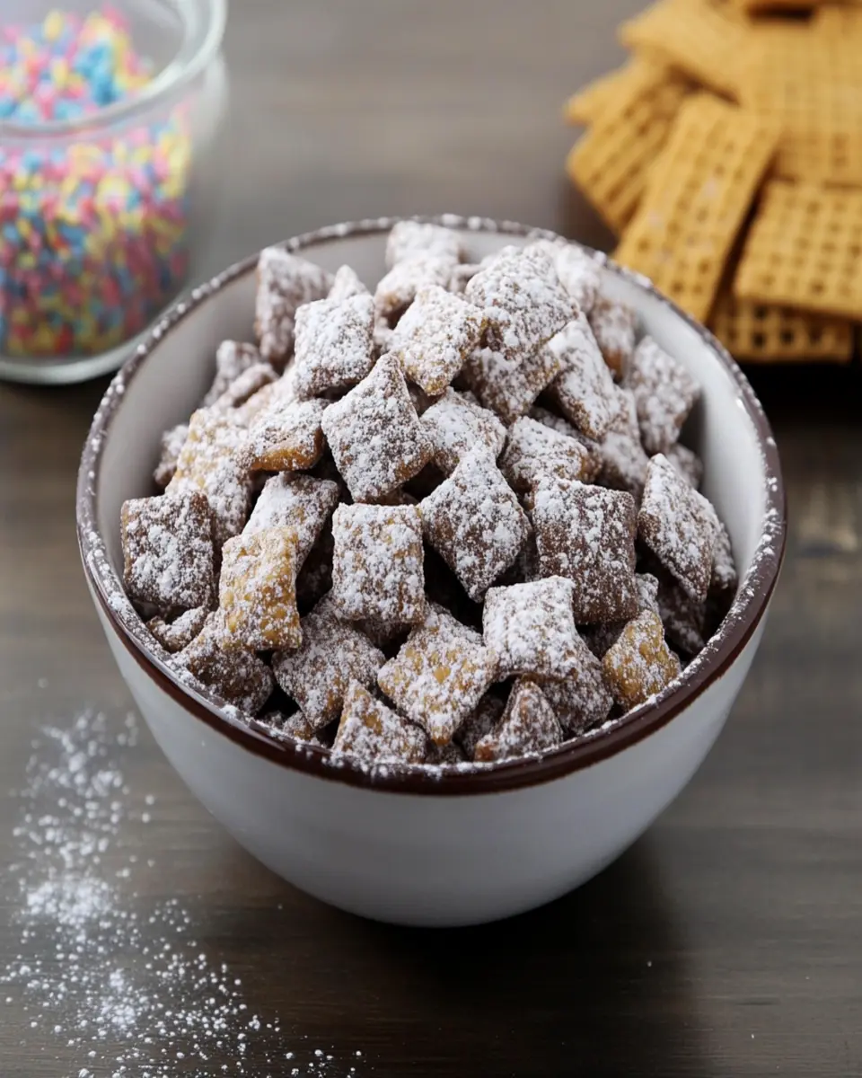 Not only is this treat quick to make, but it also serves as a crowd-pleaser. The combination of crunchy cereal, creamy peanut butter, and rich chocolate creates a flavor explosion that appeals to both kids and adults alike. With every bite, you’ll experience a delightful harmony of textures and tastes that make Muddy Buddies an irresistible snack. If you’re looking for a quick dessert that brings joy and sweetness into your day, this Muddy Buddies recipe is a must-try!