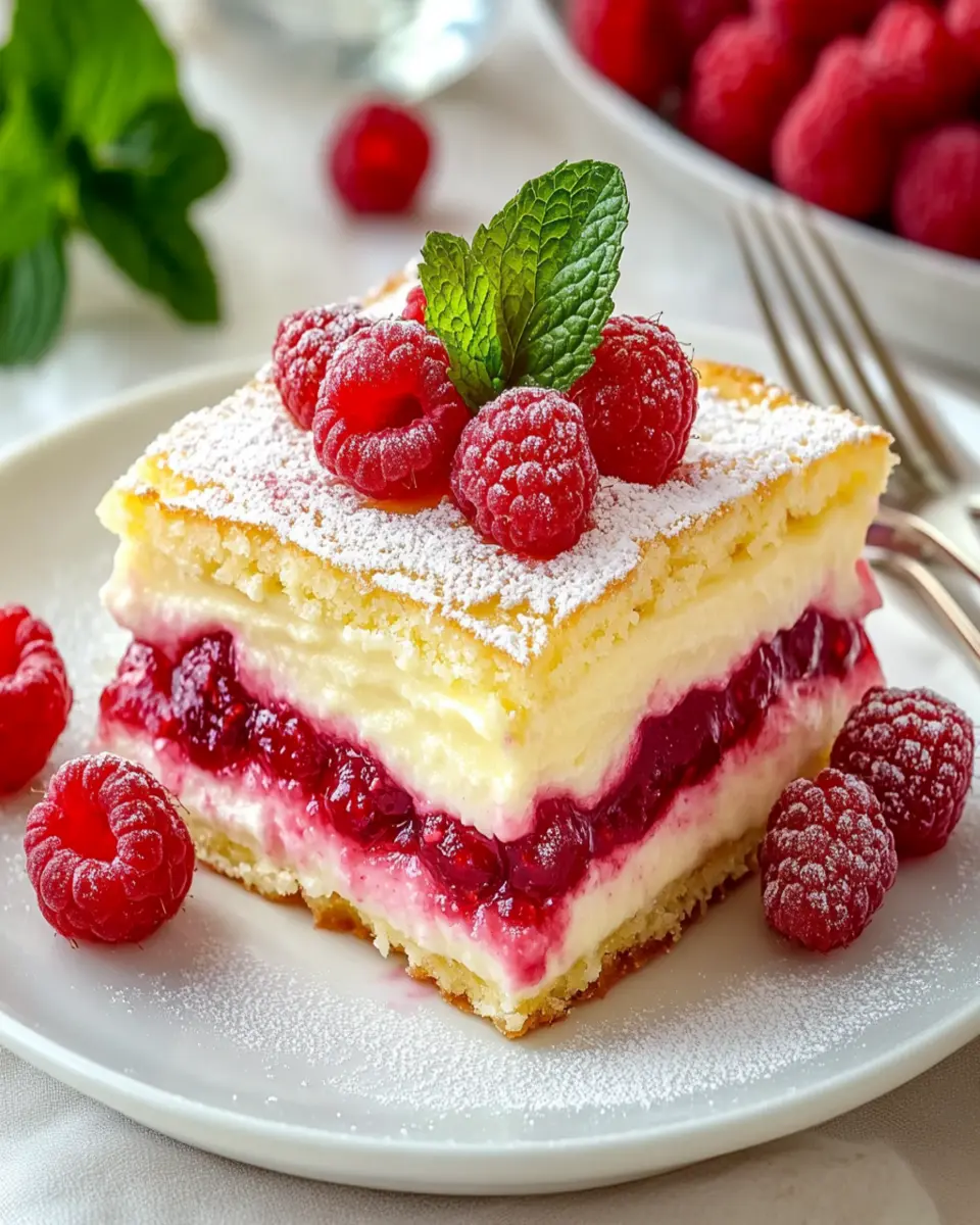 Don’t hesitate to get creative with your presentation! You can garnish each slice with a few extra raspberries or a sprinkle of powdered sugar for an elegant touch. A dollop of whipped cream or a drizzle of chocolate sauce can also elevate the dessert for special occasions.