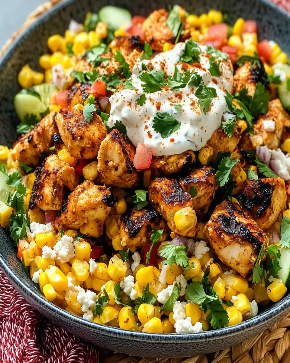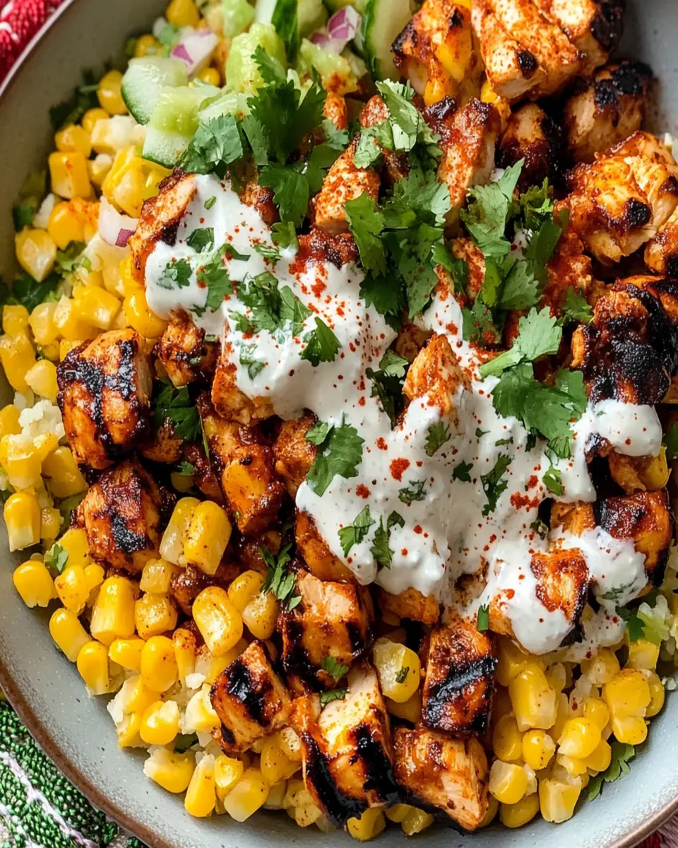 This Tasty Street Corn Chicken Bowl features juicy chicken, sweet corn, and zesty flavors, perfect for a quick and satisfying meal.